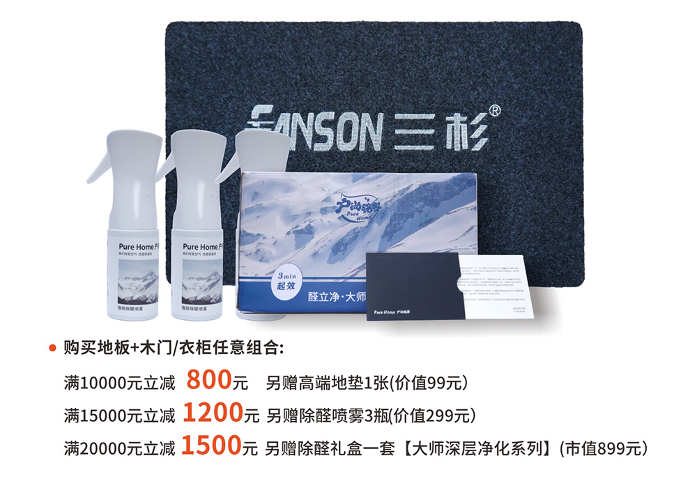 满20000元立减1500元,另赠除醛礼盒1套【大师深层净化系列】(价值899元)