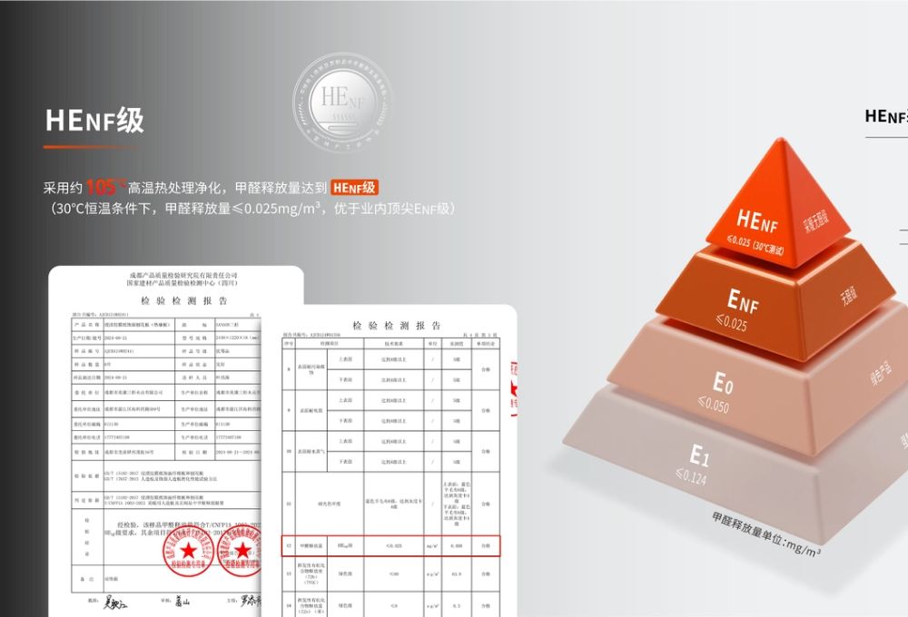 地暖无忧:在30℃高温环境下(模拟地暖条件)检测,甲醛释放量低于0.025mg/m³,达到henf级,超越国标enf级标准近3倍,彻底解决地暖升温导致的甲醛超标问题。