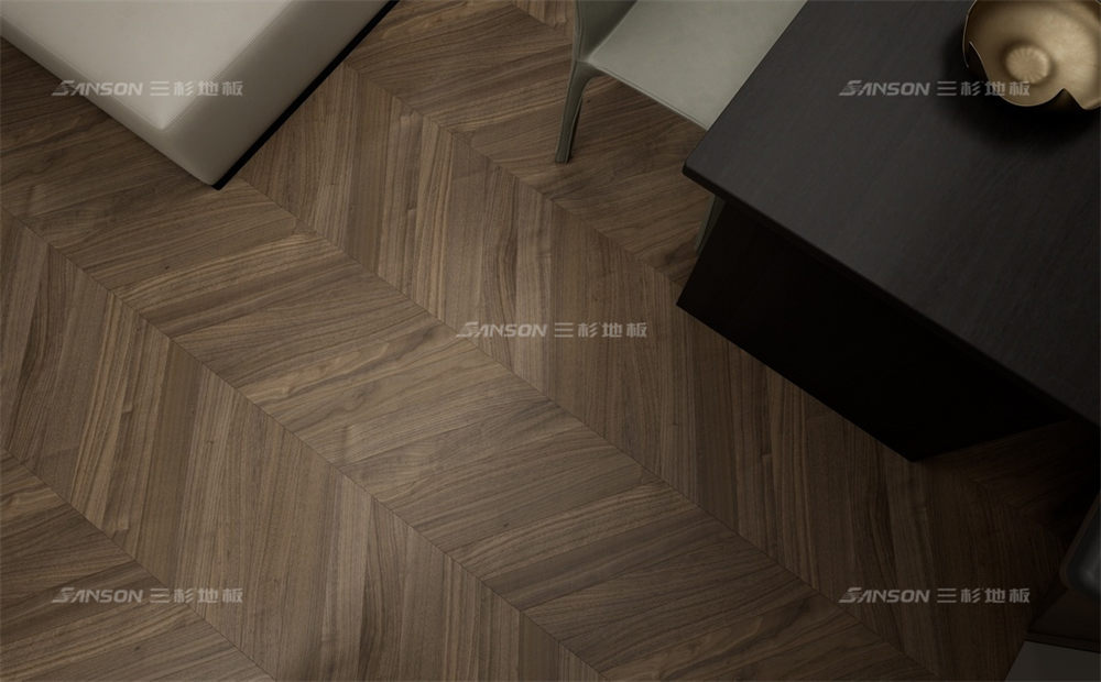 (2)个性艺术纹理(拼花/染色/烟熏等) 人字拼、鱼骨拼等通过铺贴结构本身形成强烈视觉纹理;染色、烟熏则强化色调与层次。